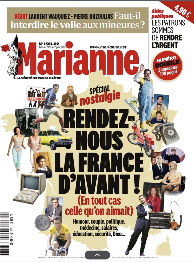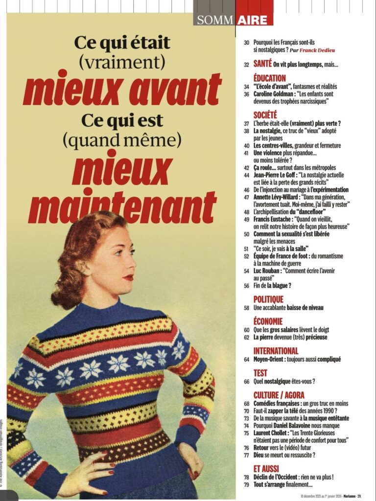 Vous allez passer un bon Noël : 1) Marianne publie un numéro double, 2) il y a un dossier « C’était mieux avant ? », 3) J’y traite trois thèmes (écologie, transports et alimentation). C’est pas le bonheur, ça ?